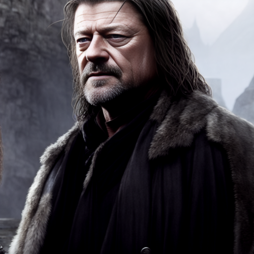 01015 3204091860 Sean Bean as Ned Stark, full body, sweaty, wet skin, exterior, sharp painting by Lu