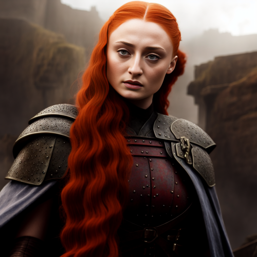 01045 1156310129 Sophie Turner as Sansa Stark, full body, sweaty, wet skin, exterior, sharp painting