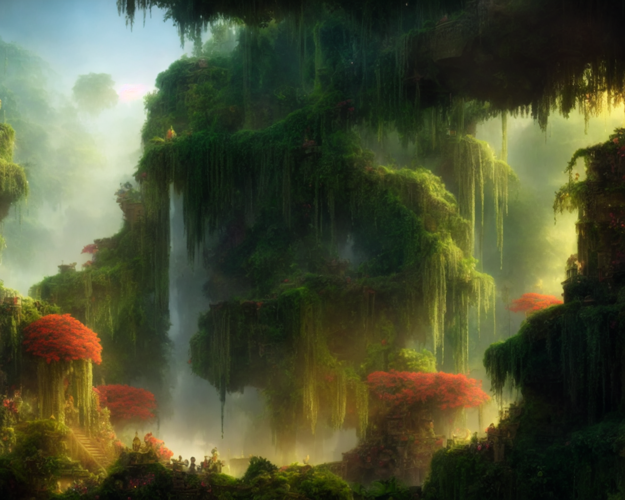 05159 129925821 the hanging garden of Babylon in the Amazon Forest, jungle, deep vegetation, D&D, fa
