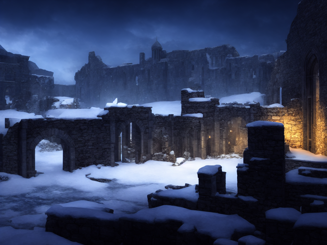 05198 2058089399 Medieval European city wall ruins in the Antarctic, frozen, ice, snowing, D&D, fant