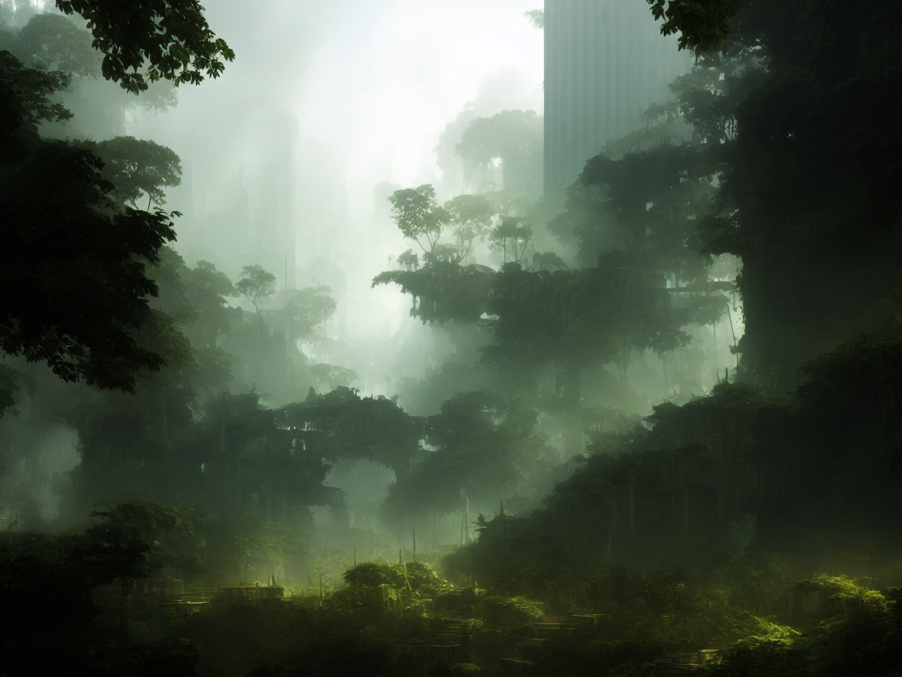 05219 2757337928 Modern city ruins in the Amazon Forest, jungle, deep vegetation, D&D, fantasy, intr