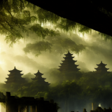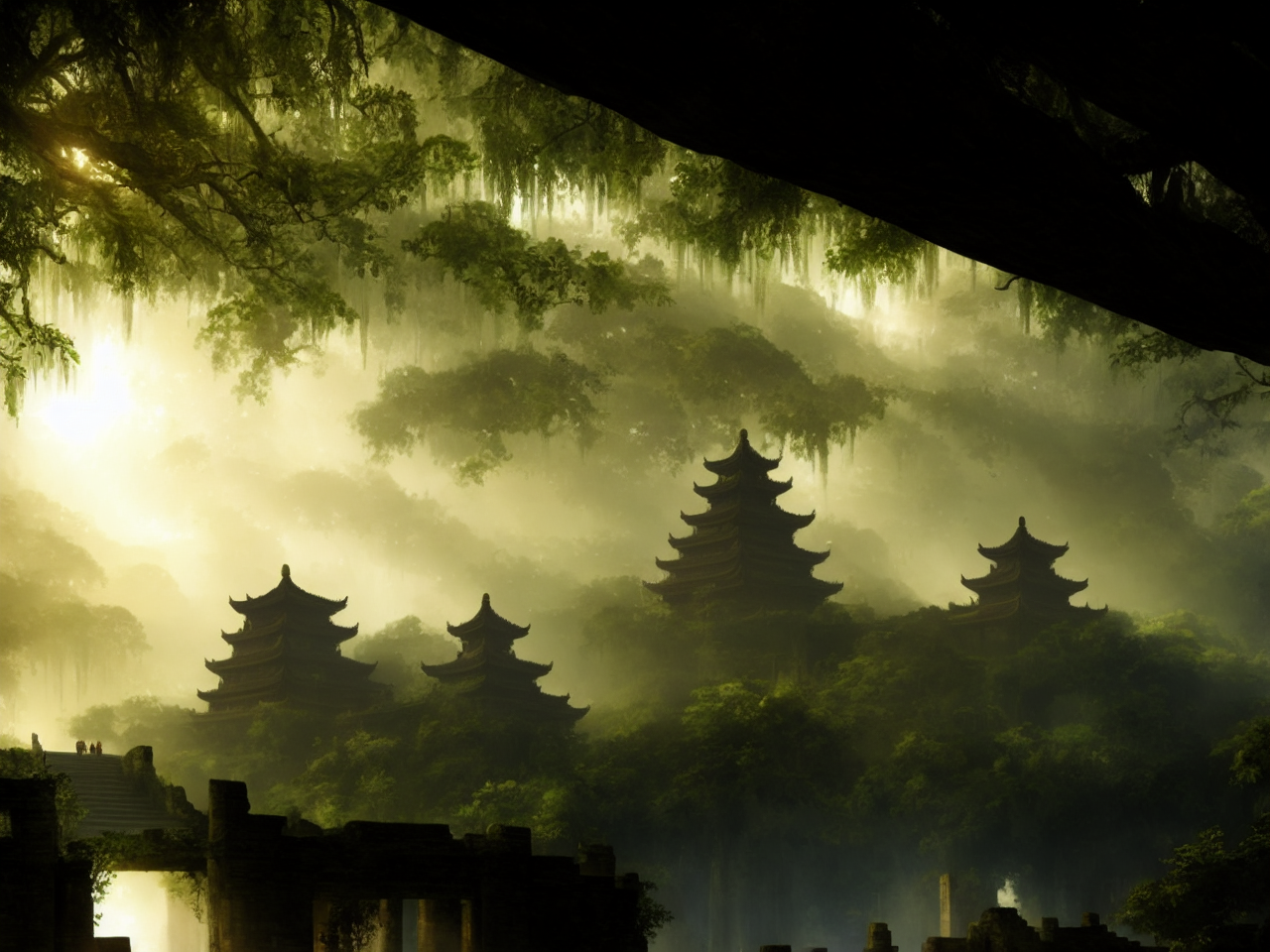 05225 2051133153 Ancient Chinese imperial city ruins in the Amazon Forest, jungle, deep vegetation,