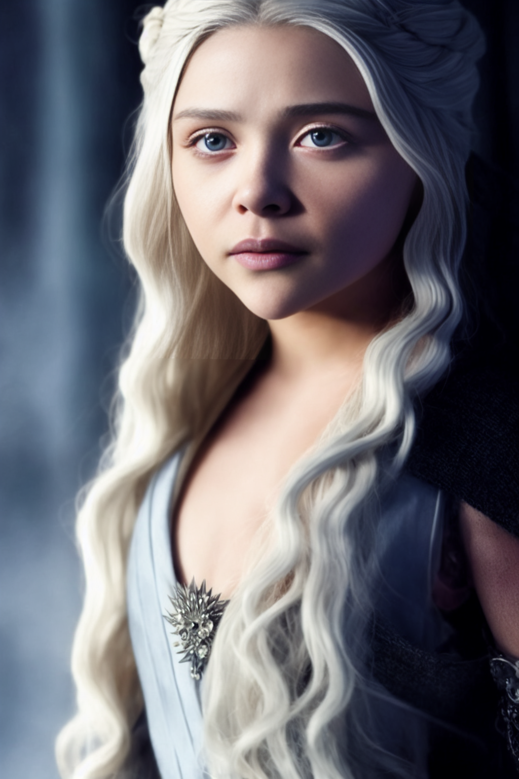07057 1151699430 Photography of young ((Chloe Moretz)) with white hairs as Daenerys Targaryen,((medi