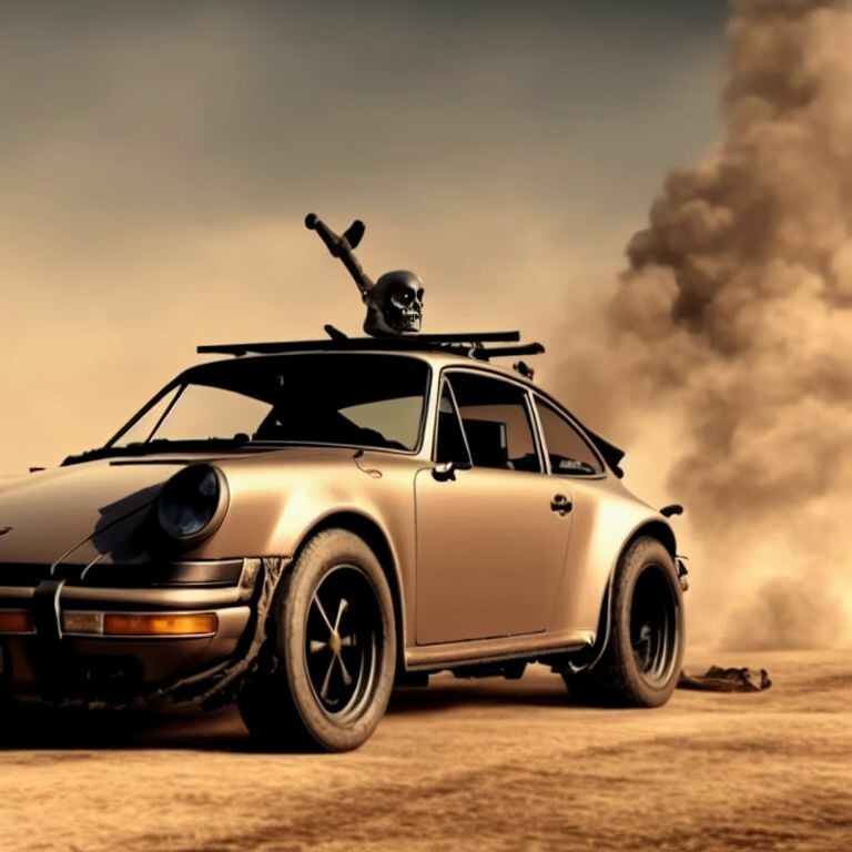 81761151 20221103134026 3865156208 a single Porsche 911 Turbo in ((Mad Max)) with a Gatling gun atta