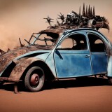 81761151 20221103134328 3865156205 a spiked citroen 2cv in ((Mad Max)) with a (machine gun) attached