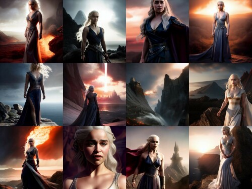 grid 0291 45077735 Emilia Clarke as Daenerys Targaryen, full body, exterior, sharp painting by Luis